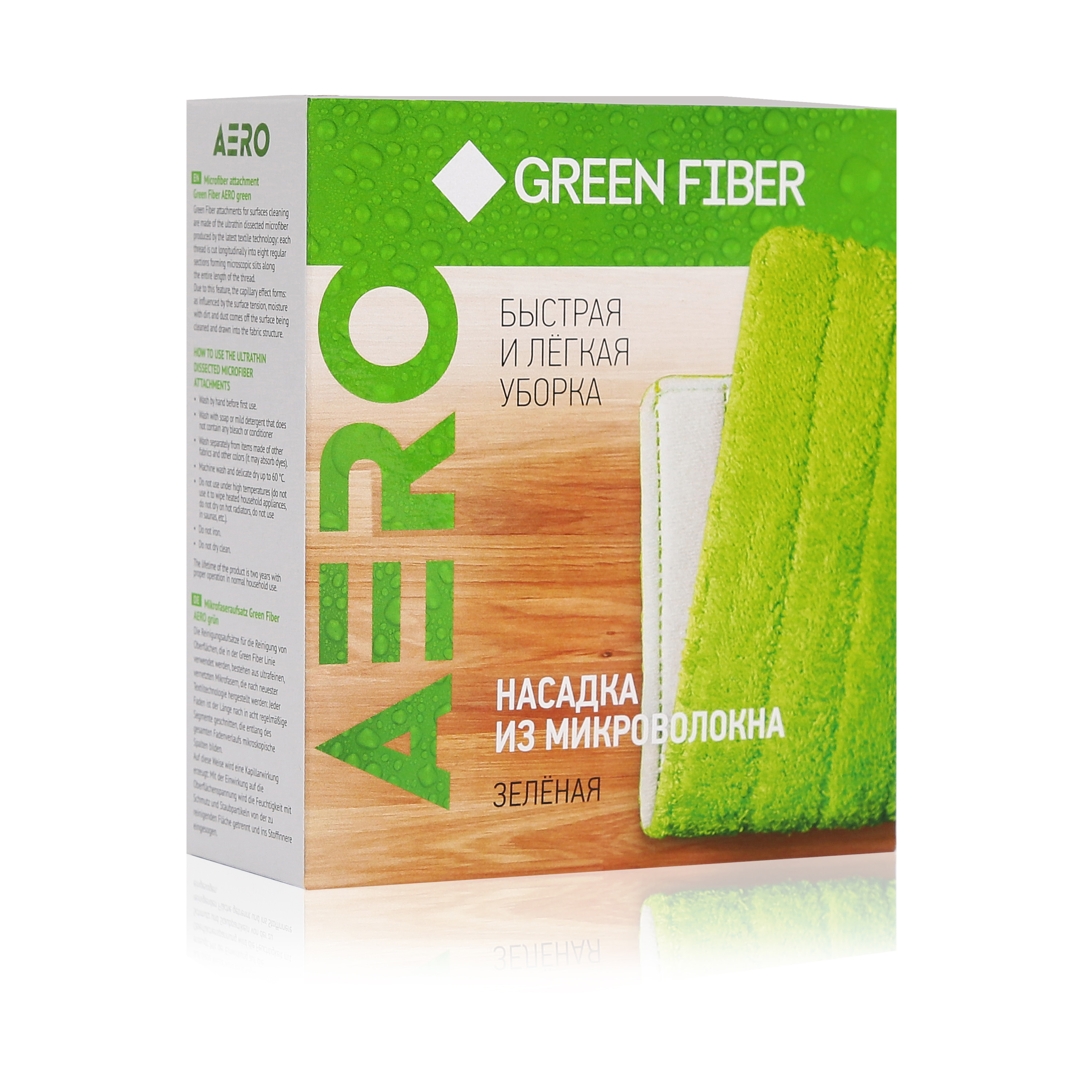 Насадка предназначена для быстрого удаления пыли и сухой грязи при ежедневной поддерживающей уборке. Она изготовлена специально для швабры с распылителем Green Fiber АЕРО. Её поверхность выполнена из износостойкого микроволокна, которое имеет очень маленькие поперечные сечения и может проникать в мельчайшие углубления, удаляя из них грязь без использования бытовой химии.